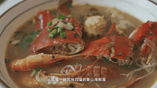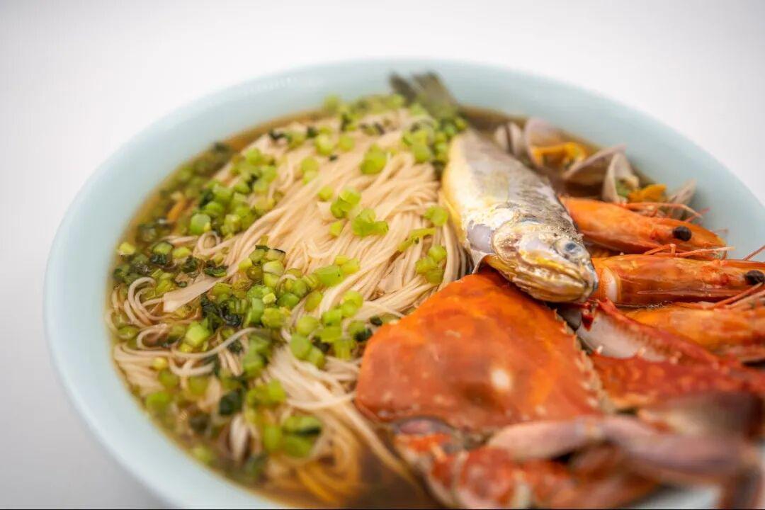 在象山,海鲜面堪称一绝,明档里鲜活海味琳琅满目,老板现点现煮。鲜汤翻滚,虾蟹贝类的鲜甜全融进汤里,嘬一口汤,再吃口劲道面条配鲜嫩海鲜,满足感瞬间拉满。