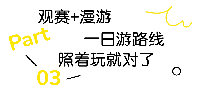 结合赛事小编贴心为您定制4条覆盖运动狂欢、美食寻鲜、影视穿越的特色全天路线,让观赛与游玩无缝衔接,一天时光充实又精彩~